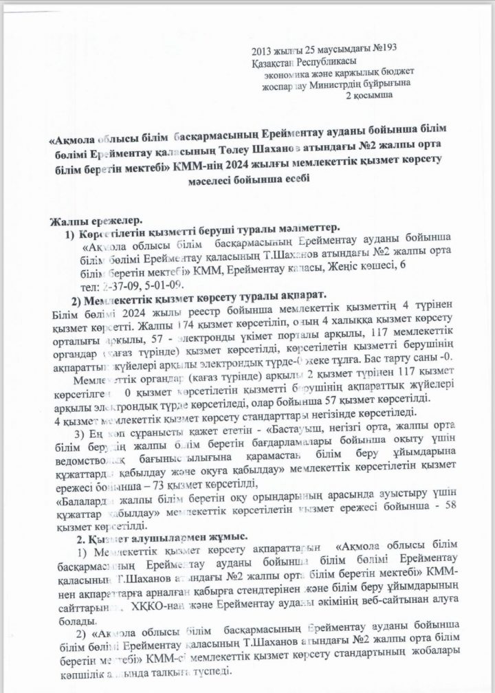 Коммунальное государственное учреждение "Общеобразовательная школа №2 имени Төлеу Шаханова отдела образования по Ерейментаускому району управления образования Акмолинской области"